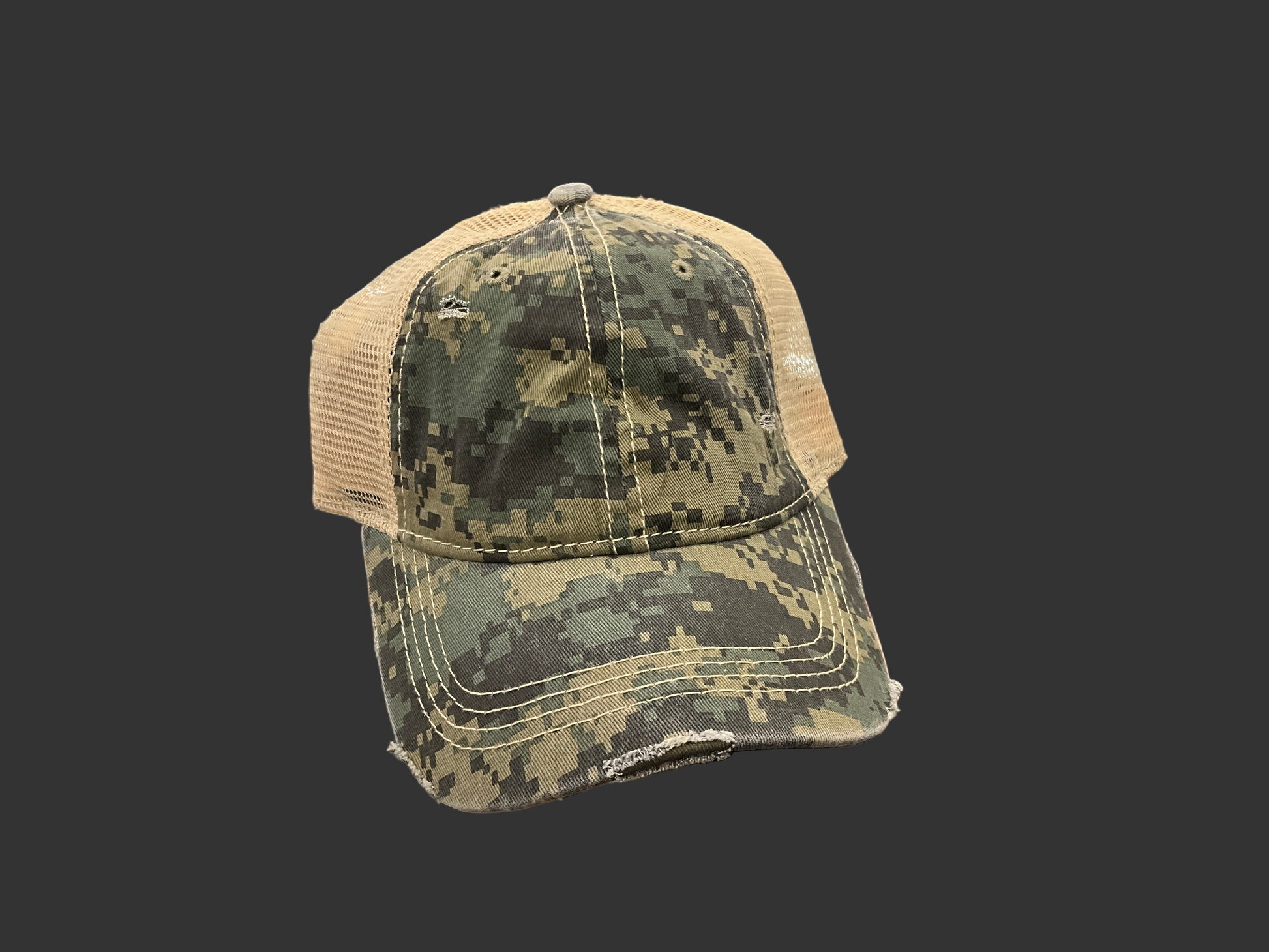 CC BEANIE- Digital Camo Mesh Back High Pony Ball Cap-BT-927