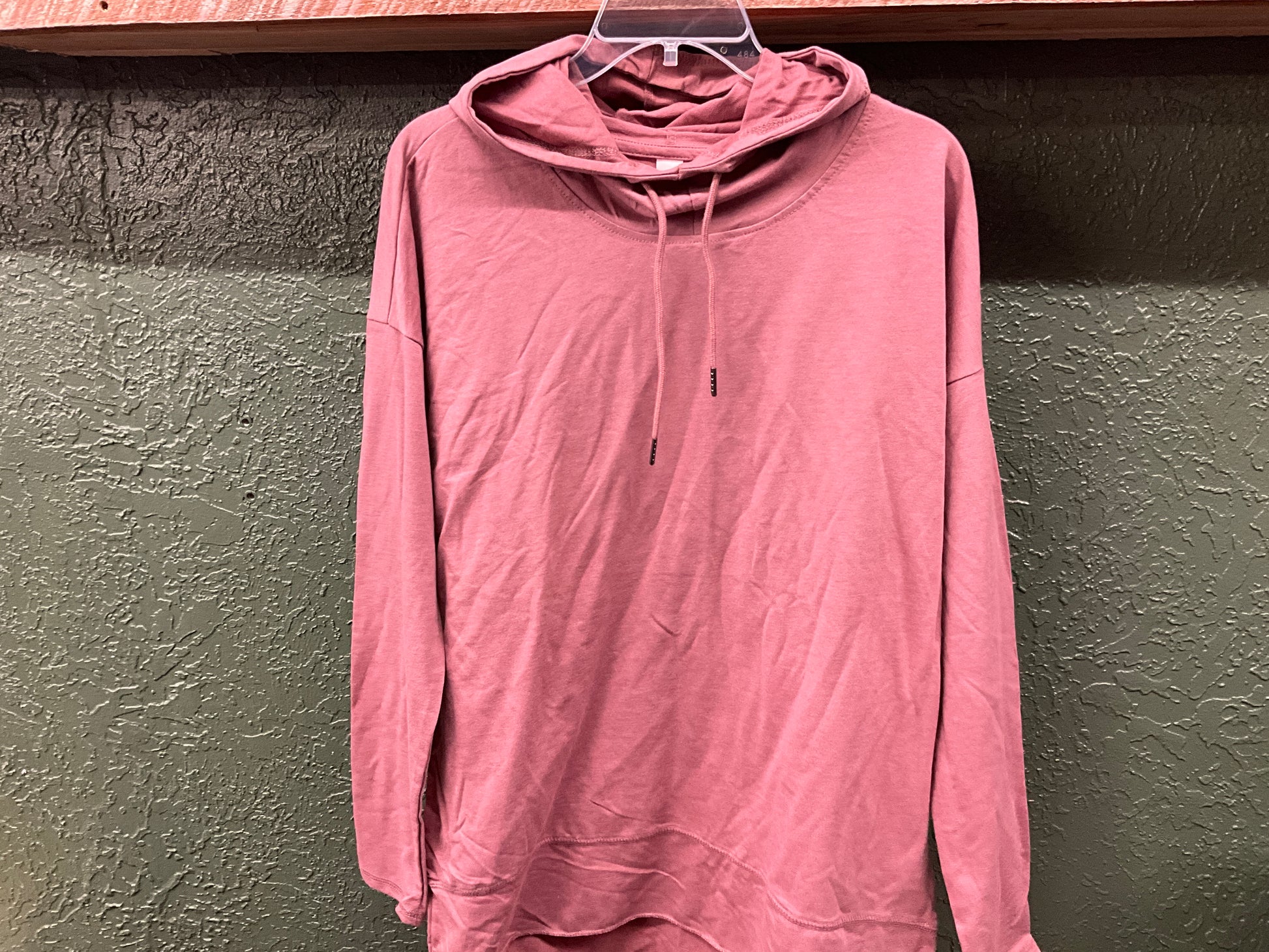 District- ladies featherlight French Terry hoodie, 4.5oz ring spun cotton/poly, cowl neck, pieced Merton edge hem, drawstring cord