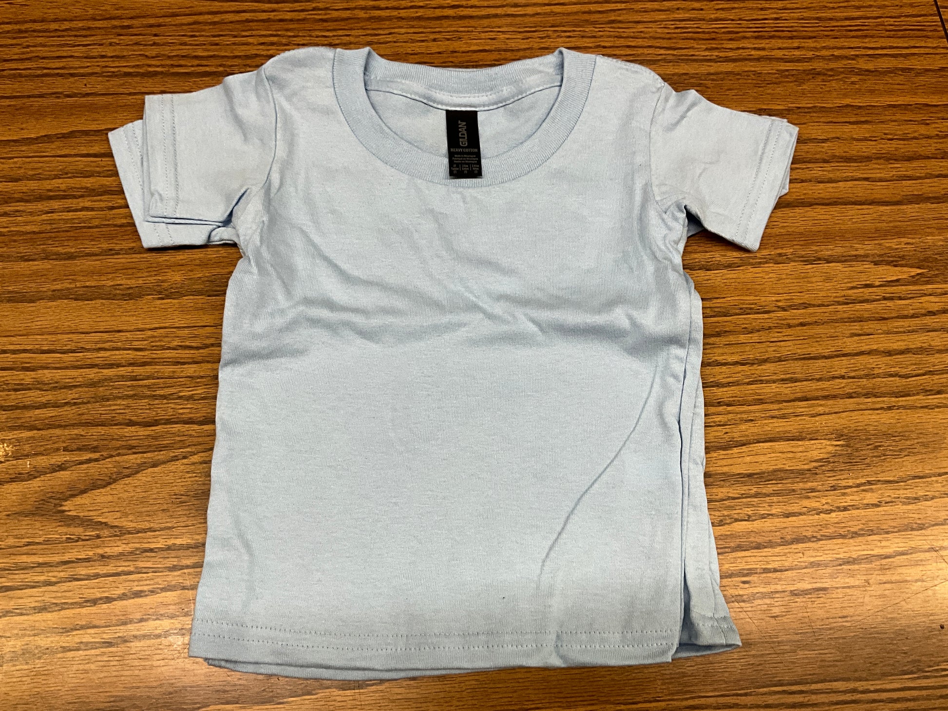 Toddler short sleeve, crewneck tee, navy is 100% cotton, heather grey is cotton/poly blend