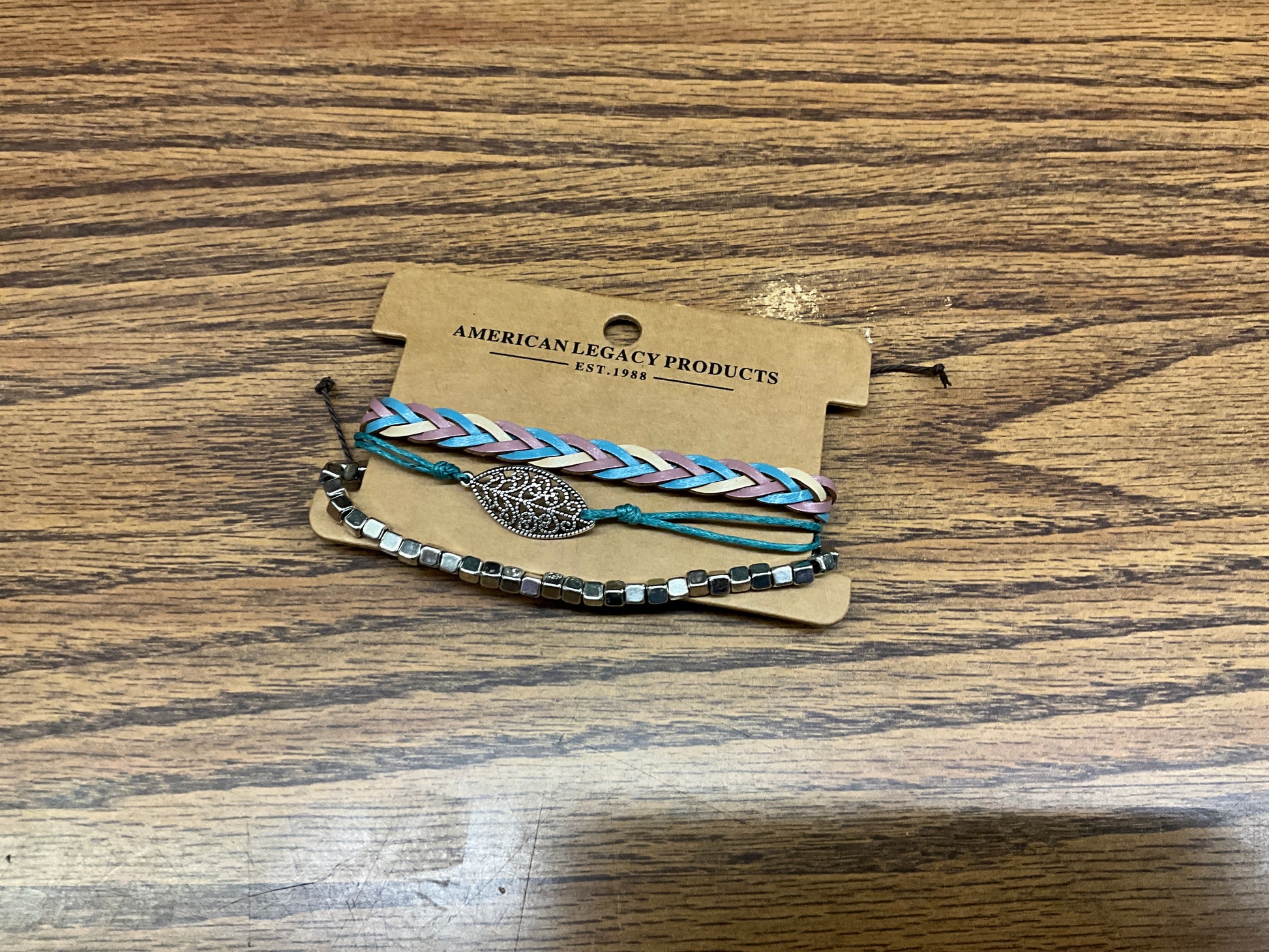 6/25- braided leather strands w/silver squares and fillagree CONCHO