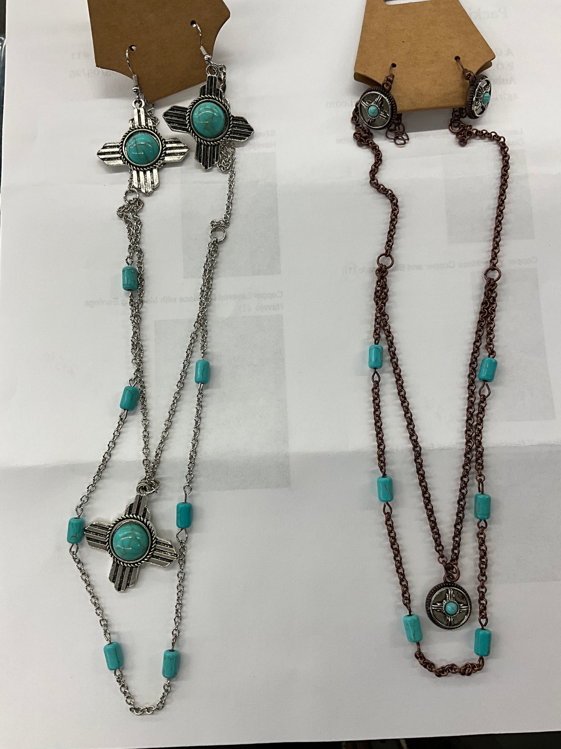 Layered necklaces w/matching earrings, Navajo style